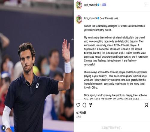 隨后的比賽中,穆塞蒂被現(xiàn)場觀眾狂噓。社交媒體的視頻顯示,部分觀眾更是在穆塞蒂發(fā)球時,故意大聲咳嗽來惡心他。