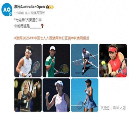 七人進(jìn)入澳網(wǎng)單打正賽簽表,澳網(wǎng)官方在第一時間送上祝福之際,也給中國七人團(tuán)取了一個相當(dāng)吉利的名字——七龍珠。
