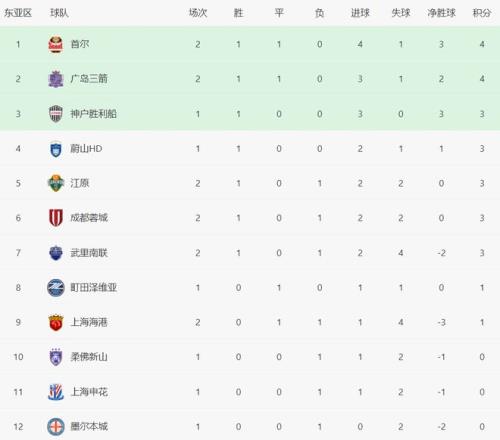 隨著海港11絕平廣島,蓉城10,亞冠最新積分榜:中超球隊(duì)奪首勝