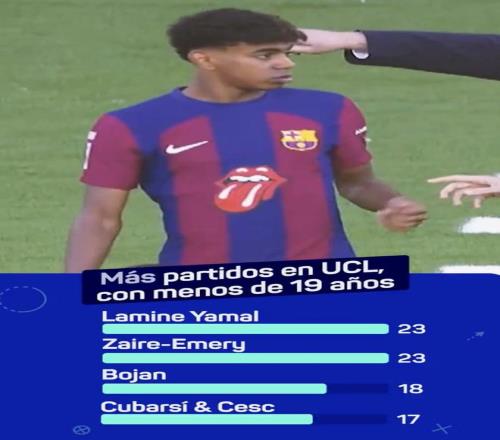 如果此役對陣巴黎圣日耳曼出場,亞馬爾將以24場成為19歲之前歐冠出場次數最多的球員,打破巴黎中場扎伊爾-埃梅里保持的紀錄(23場)。