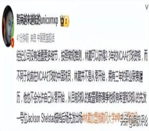 媒體人趙探長(zhǎng)發(fā)文點(diǎn)評(píng)說(shuō)道:林葳這次加盟確實(shí)一波三折,先后要通過(guò)考試、簽證、資質(zhì)審查等客觀阻礙,但正所謂好事多磨,在資質(zhì)審查通過(guò)后,可以確保他最多能夠在NCAA打上三年。另外,林葳得到了球隊(duì)主教練的登場(chǎng)保證,在NIL政策下,他還有資格獲得一份比肩CBA合同的收入。