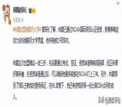 林葳加盟NCAA俄勒岡大學(xué)引熱議有出場(chǎng)時(shí)間保障收入比肩CBA合同