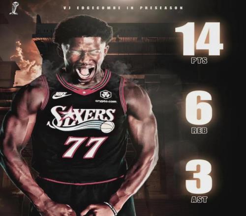 25屆探花秀VJ-埃奇庫姆(費(fèi)城)在此役,迎來了自己NBA季前賽首秀,以首發(fā)分衛(wèi)身份出戰(zhàn),亮相時(shí)間為全場(chǎng)最高的約31分鐘,投籃13中4,其中6中1,罰球5中5貢獻(xiàn)14分6板3助,正負(fù)值+1,身體天賦的確瘋狂,可投籃還是有很大的提升空間。