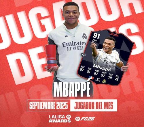 姆巴佩被評為9月份的月度最佳球員,該獎項由LALIGA與EA合作頒發(fā),這位法國球員在本月表現出色,成為皇家馬德里進攻中的關鍵球員,在本賽季的7場西甲比賽中贏得了6場勝利。