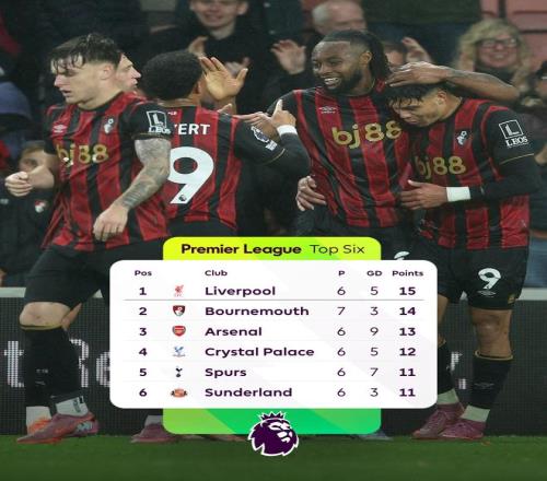 伯恩茅斯連續(xù)六輪不敗暫升至英超第二,創(chuàng)隊(duì)史最佳開局