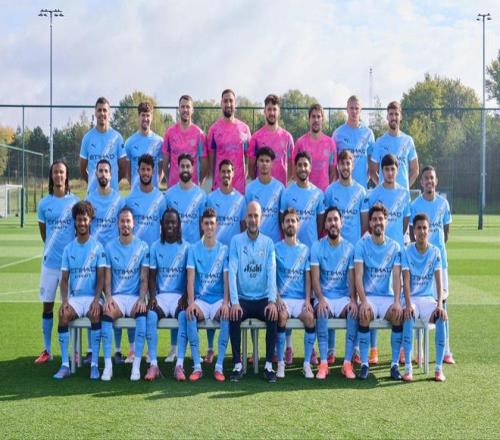 這張照片由瓜迪奧拉、他的教練組以及完整的一線隊成員共同出鏡,于城市足球?qū)W院拍攝完成。