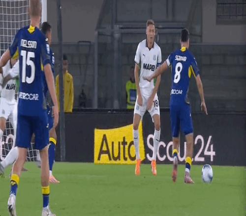 71’法德拉造點(diǎn),皮納蒙蒂主罰被撲補(bǔ)射命中,維羅納0-1薩索洛