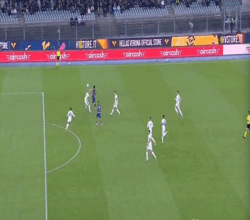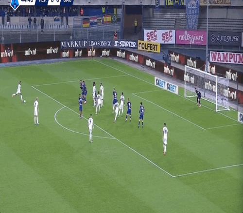 60’維羅納后衛(wèi)怒射自家門(mén)柱,門(mén)將完成關(guān)鍵撲救