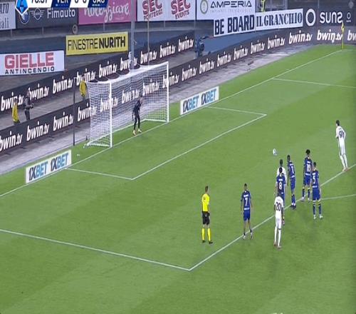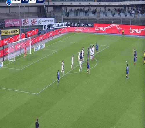 45’勞利恩特任意球直接打門(mén),維羅納門(mén)將將球托出底線
