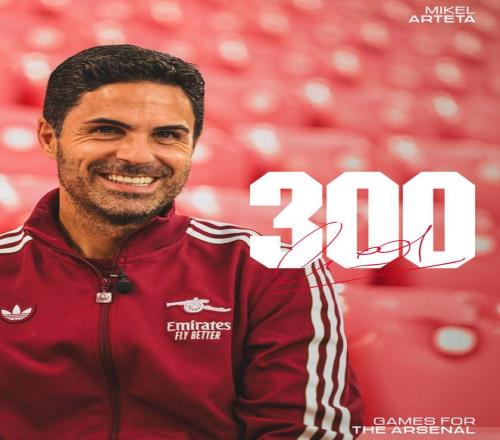 本場(chǎng)比賽,也是阿森納主帥阿爾特塔執(zhí)教球隊(duì)的第300場(chǎng)比賽。