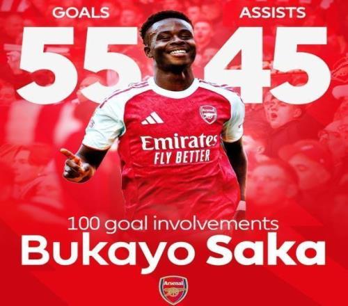 薩卡完成阿森納生涯200場英超里程碑,此前的比賽中他代表槍手在英超賽場上取得54球外加45個助攻的數(shù)據(jù)。如今,薩卡在職業(yè)生涯當中參加的第200場英超聯(lián)賽的比賽,制造 了第100粒英超進球,這意味著他剛好每兩場比賽就能直接參與一個進球。