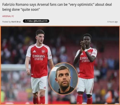 羅馬諾說:“目前,阿森納和薩卡的續(xù)約談判也在進(jìn)行中,我對這個(gè)情況感到非常樂觀。接近阿森納的消息源表示,薩卡的續(xù)約很快就能完成,讓我們看看什么時(shí)候吧,這也取決于合同細(xì)節(jié)的談判,不過薩卡在阿森納超級(jí)開心。