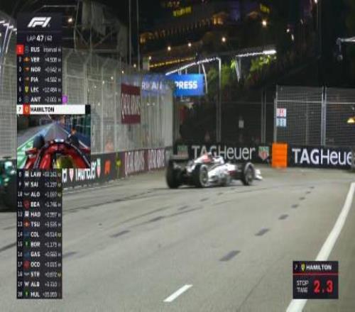 第四十七圈:漢密爾頓第二次進(jìn)站,并換上軟胎