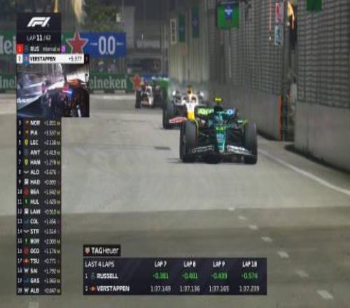 第十一圈:拉塞爾已經(jīng)拉開(kāi)超過(guò)五秒的優(yōu)勢(shì)