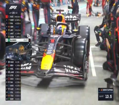 第二十圈:維斯塔潘進(jìn)站并換上了一套全新的硬胎