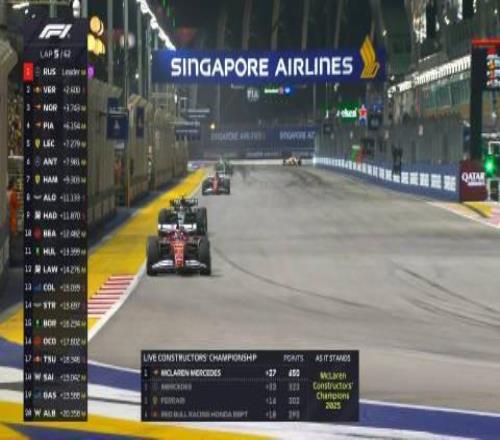 F1新加坡站正賽:拉塞爾桿位奪冠,維斯塔潘亞軍,邁凱倫三四