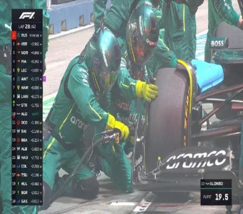 第二十八圈:阿隆索進(jìn)站換胎,用時(shí)9.2秒