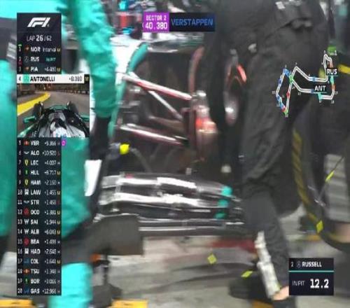 第二十六圈:拉塞爾進(jìn)站,出站后落在了第四位