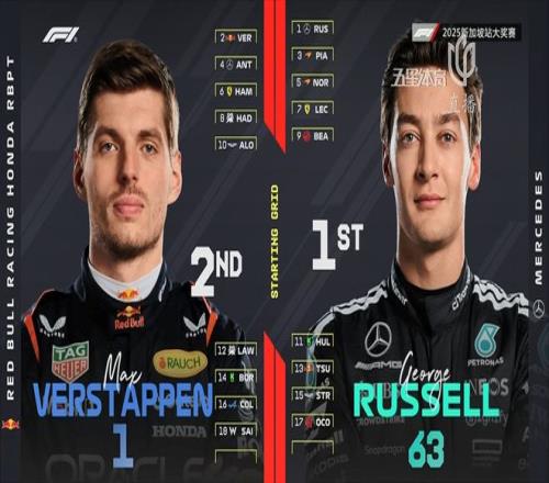 昨晚的排位賽無疑給全世界帶來了驚喜!拉塞爾獲得桿位,維斯塔潘緊隨其后同樣在頭排發(fā)車,皮亞斯特里第三位起步,而排在第四的是同樣來自梅奔車隊的“小kimi”安東內(nèi)利。而法拉利雙雄于第6和第7位起步,在他們身前是麥克拉倫的諾里斯。