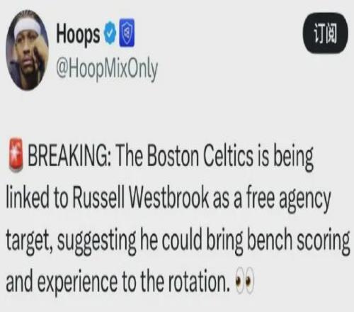 據(jù)美媒Hoops報道,凱爾特人有意在自由市場簽下威少。