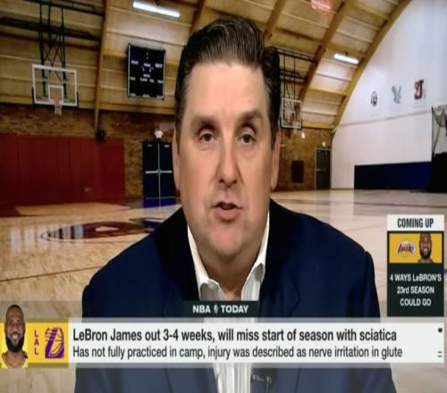 Shams在節(jié)目中表示,詹姆斯的傷病“首次出現(xiàn)于7月末至8月初的一次球場(chǎng)訓(xùn)練期間”。他還提到,受此傷病影響,在9月30日訓(xùn)練營(yíng)開(kāi)啟前,詹姆斯“已有一個(gè)多月未進(jìn)行太多籃球相關(guān)訓(xùn)練”。