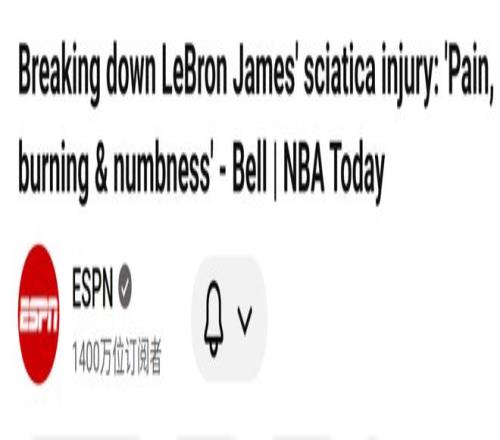 Bell還表示,沒(méi)人愿意承認(rèn)人到中年是導(dǎo)致問(wèn)題的因素之一,但事實(shí)上,詹姆斯的年齡符合坐骨神經(jīng)痛的常見(jiàn)發(fā)病群體特征。我們稱之為“與年齡相關(guān)的退行性變化”。雖然聽(tīng)起來(lái)很嚴(yán)重,但這本就是衰老過(guò)程的一部分。對(duì)于像他這樣長(zhǎng)期處于頂級(jí)競(jìng)技水平的運(yùn)動(dòng)員來(lái)說(shuō),出現(xiàn)這類與年齡相關(guān)的身體變化是意料之中的。
