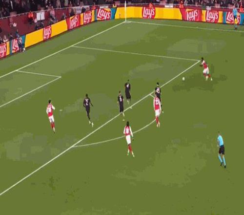 第48分鐘,基米希解圍失誤,薩卡得球后進(jìn)入禁區(qū)抽射打高。